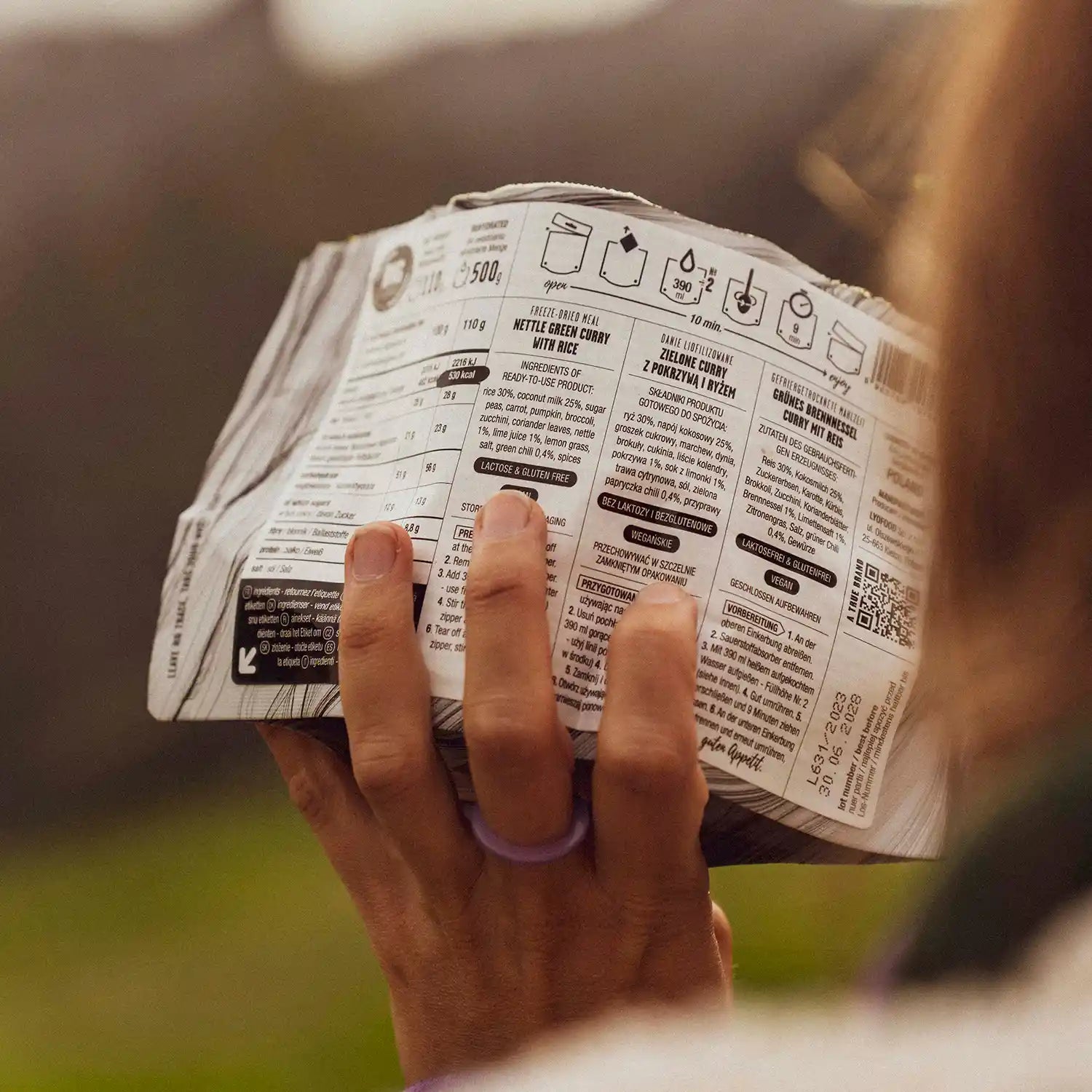 Freeze-dried meal: Nettle and vegetable curry with rice