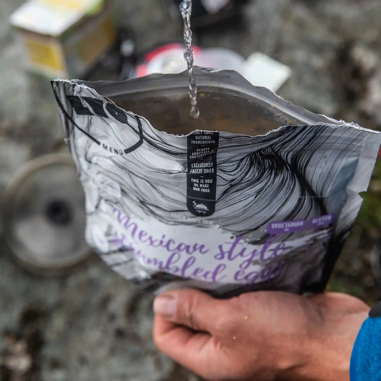 Desayuno liofilizado: Huevos revueltos con verduras y queso