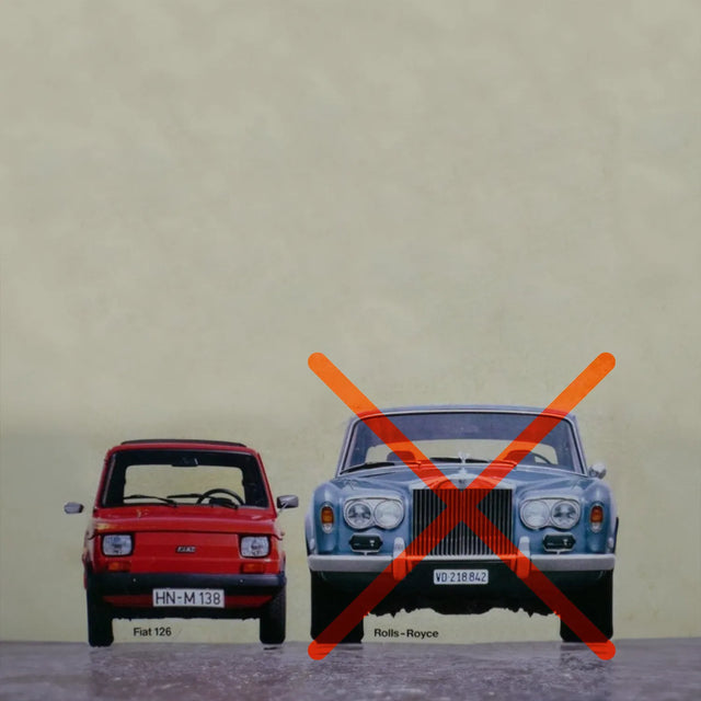 El primer coche de reparto de la empresa fue el Fiat 126p, en el que sólo se dejaba el asiento del conductor para obtener el máximo espacio posible.