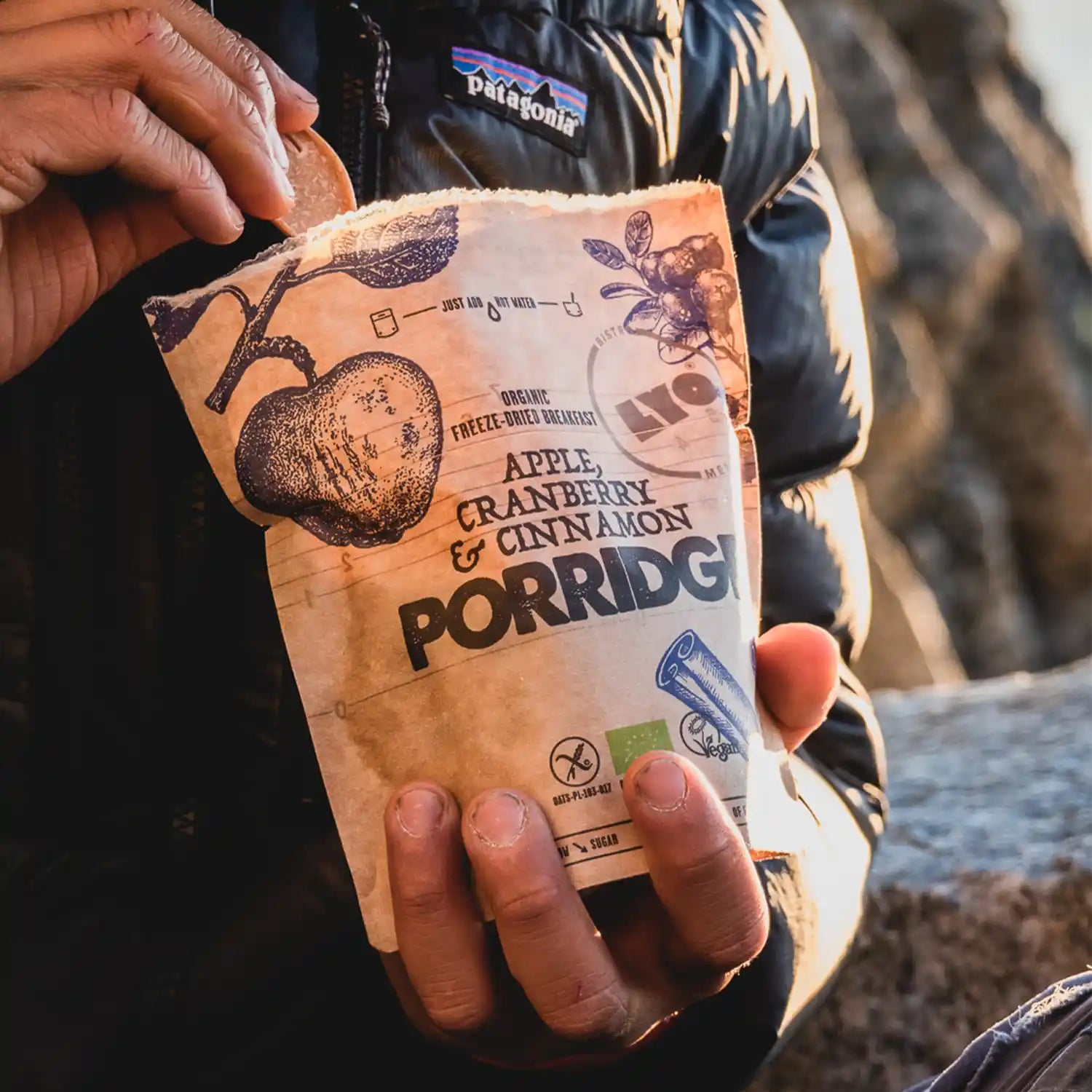 Colazione liofilizzata biologica: Porridge con mela, mirtillo rosso, cannella e semi di chia