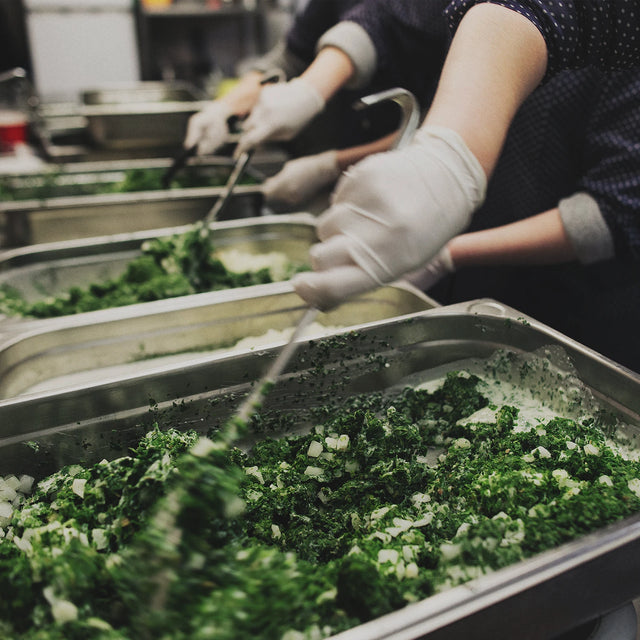 Elaboriamo tutti gli ingredienti internamente. Una volta arrivati, non lasciano la nostra struttura fino alla consegna finale.