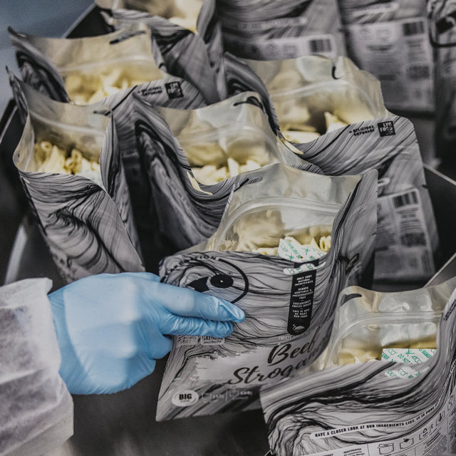 I pasti privi di allergeni sono confezionati su una linea dedicata che elimina il rischio di contaminazione incrociata. Come azienda innovativa, gestiamo anche il nostro laboratorio, dove testiamo ogni piatto per assicurarci che sia completamente sicuro per il consumatore.